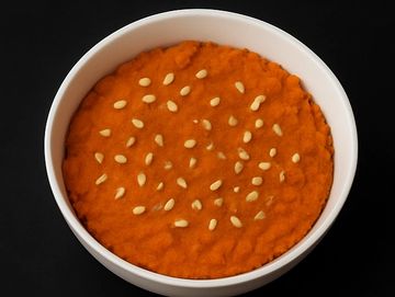 تحلية صحية مصنوعة من الجزر الطازج، الحليب، السمن، والمكسرات. تُقدّم مزينة بشرائح اللوز.